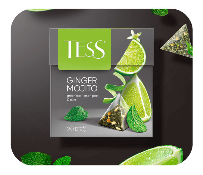 Un estallido de emociones: mezcla de Ginger Mojito. El sabor único del té verde con jengibre se complementa con la frescura de la menta y el picante de la hierba limón.